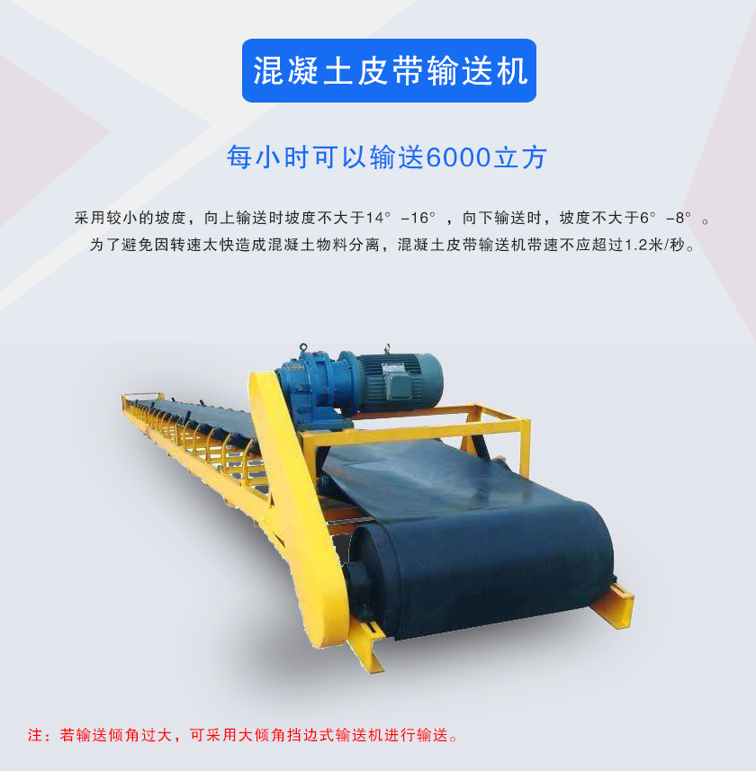 混凝土皮帶輸送機(jī)主要用于一般的中大型混凝土攪拌站中,可水平或大傾角布置,混凝土皮帶輸送機(jī)采用耐磨性較高的輸送帶,耐磨損,使用壽命長,可根據(jù)輸送現(xiàn)場多臺配合使用,也可與其他設(shè)備配套.