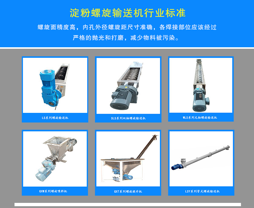 淀粉螺旋輸送機(jī)主要由驅(qū)動(dòng)裝置、螺旋、頭節(jié)、中間節(jié)、尾節(jié)、進(jìn)、出料裝置等組成。