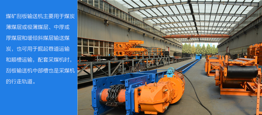 煤礦刮板輸送機(jī)主要用于煤炭薄煤層或極薄煤層、中厚或厚煤層和緩傾斜煤層輸送煤炭,也可用于掘起巷道運(yùn)輸和順槽運(yùn)輸,配套采煤機(jī)時,刮板輸送機(jī)中部槽也是采煤機(jī)的行走軌道。