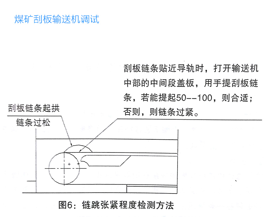機(jī)尾部由機(jī)尾架、機(jī)尾軸、緊鏈裝置、導(dǎo)鏈輪或機(jī)尾滾筒組成;導(dǎo)鏈輪用來改變刮板鏈方向;緊鏈裝置用來調(diào)節(jié)刮板鏈松緊。