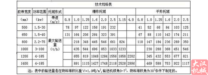 水平皮帶輸送機按其支架結(jié)構(gòu)有固定式、移動式兩種:按輸送帶材料有膠帶、塑料帶和鋼芯帶之分。皮帶輸送機的工作環(huán)境溫度一般在-10°C--+40°C之間,要求物料溫度不超過70°C;耐熱橡膠帶可輸送120°C以下的高溫物料。物料溫度更高時不宜采用膠帶輸送機。當(dāng)輸送具有酸性堿性油類物質(zhì)和有機溶劑等成分的物料時,需采用耐油、耐酸堿的橡膠帶式塑料帶。帶式輸送機的帶寬可分為:500、650、800、1000、1200和1400mm。用戶可根據(jù)帶式輸送機的輸送長度,物料的種類、容重、輸送量、輸送長度等諸因素通過計算確定輸送機的布局以及所選用的膠帶寬度、帆布層數(shù)和膠帶厚度。