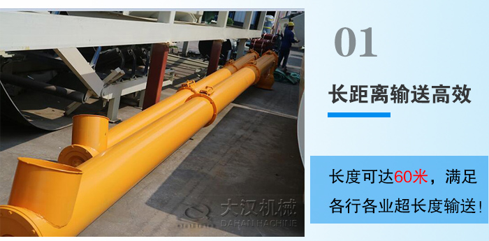 無軸螺旋輸送機單機輸送長度可達60米,它適合水平輸送,傾斜角度不要超過20°(根據(jù)實際的使用情況而言)同時可以根據(jù)用戶需要進行對螺旋輸送機的輸送長度進行調節(jié),其采用多級串聯(lián)式安裝可實現(xiàn)超長距離輸送物料。