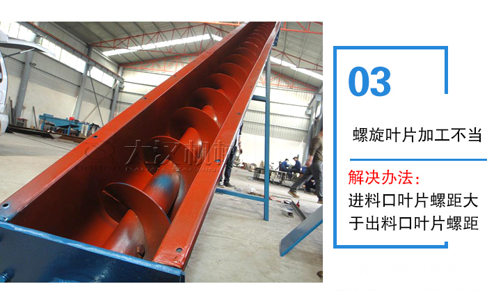 解決辦法:對于較長的螺旋輸送機可采取逐漸增大的螺距,防止輸送機在喂料處被物料淹沒而產(chǎn)生的過負荷,也可防止氣化后物料從料倉中向外涌出。